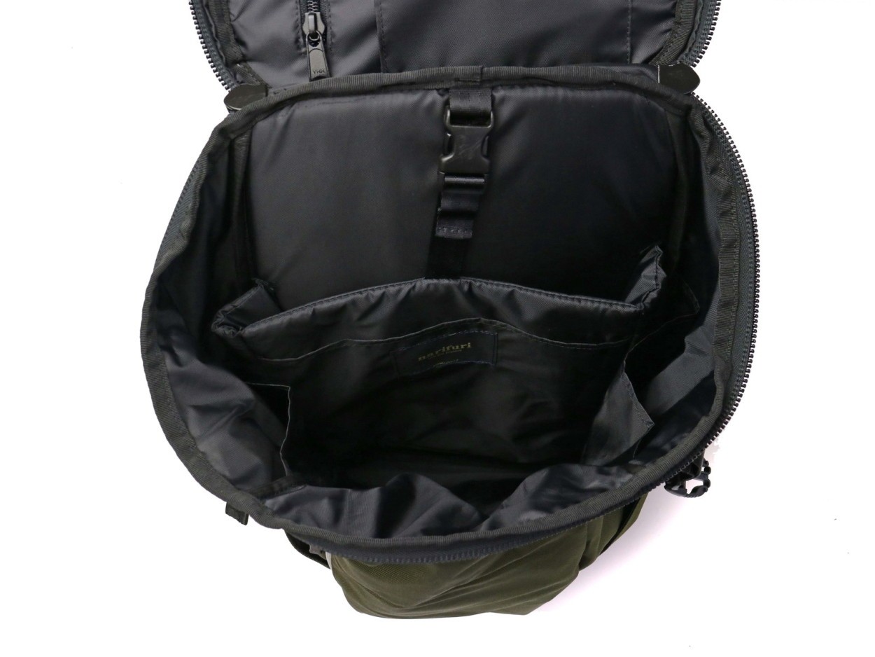 日常で起こりうる様々な出来事への対処を最大限カバーできるnarifuriの中でも一番機能的なバックパック。デザインはミリタリーバッグをベースとし、アウトポケットを少なくしたり、ハギを最小に抑えることで、長年飽きることなく使えるシンプルなルックスに仕上げています。