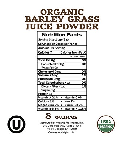 Organic Merchants Co. is known as the leader in premium natural and Organic foods. By eliminating the middle man, we avoid un-needed markup and handling and we sell directly to consumers worldwide. The Organic Merchants Co. line of grass juice powders are produced in a sustainable and responsible manor which ensures minimal impact on the environment and maximum nutrient retention. Organic Merchants grass juice powders start with a squeezing or "juicing" of the grasses. This eliminates virtually all of the non-digestable cellulose content. From there, the processing and drying process occurs at room temperature so the product retains the maximum botanical content by not being exposed to high heats - and as such these products are RAW. Barley grass juice powders are loaded with anti-oxidants and they are ready to be mixed with your favorite beverages. This product is Organic, RAW, Vegan, Kosher, Gluten Free, and NON GMO. Enjoy the Organic Merchants difference today.Feature