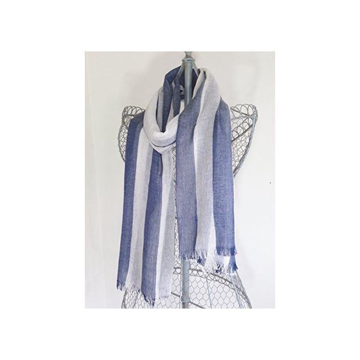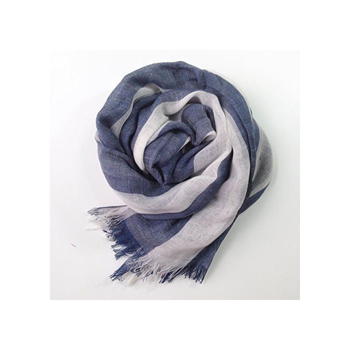 원본상품명:【ノブランド品】ビックストライプストル 綿麻レヨン 薄手 レディス (ネイビ×白)