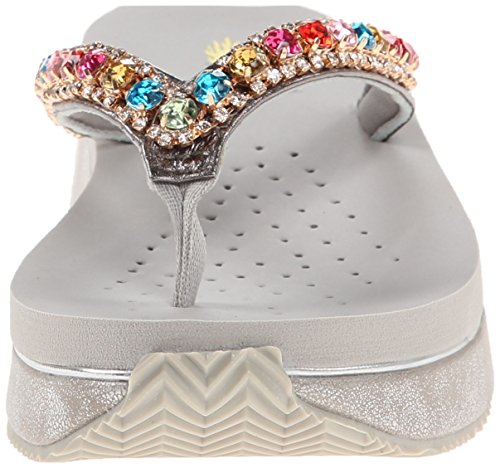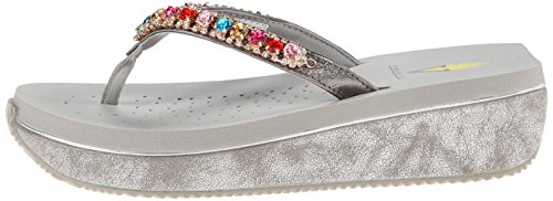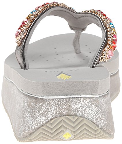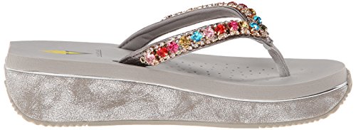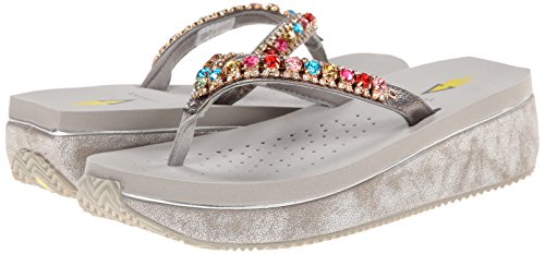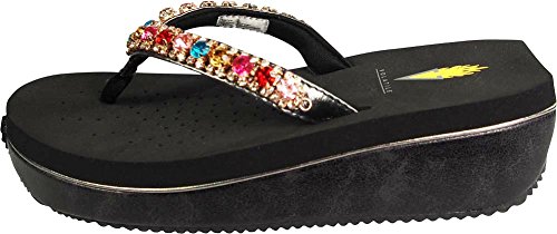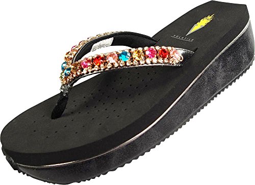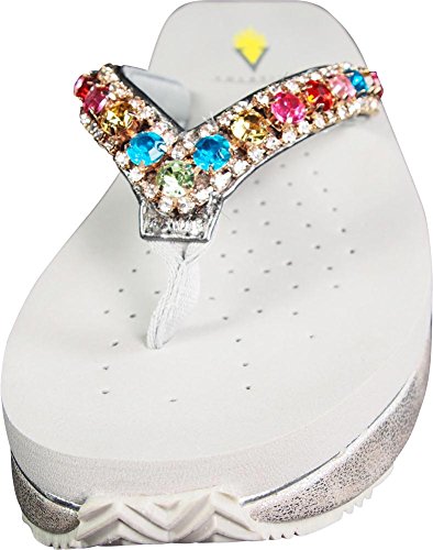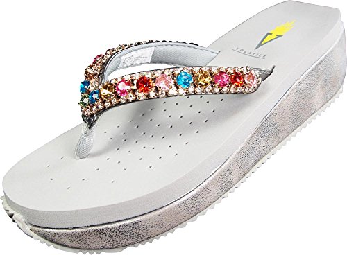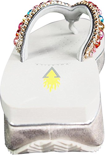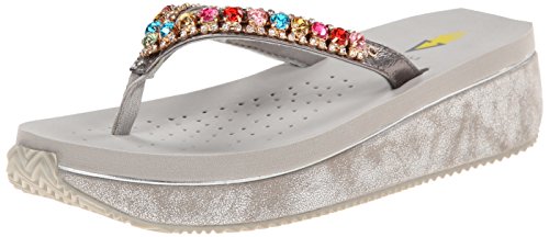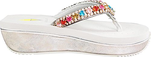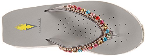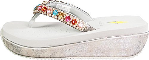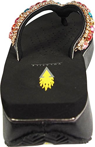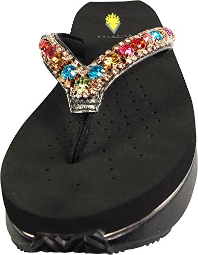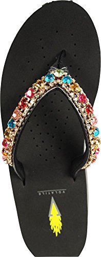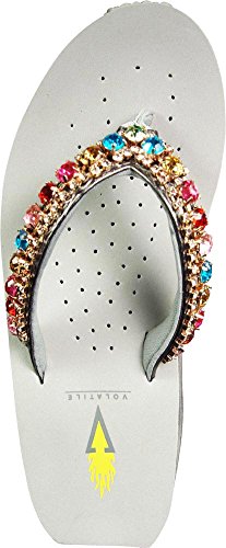 Studio : VOLATILE Footwear Publisher : VOLATILE Footwear Binding : Shoes Product Description Like a diamond, this jeweled sandal glitters under the hot summer sun!Jewel covered leather strapLightly padded footbed1-7/8" wedge heelAvailable in whole sizes only, half sizes please order the next size up 0