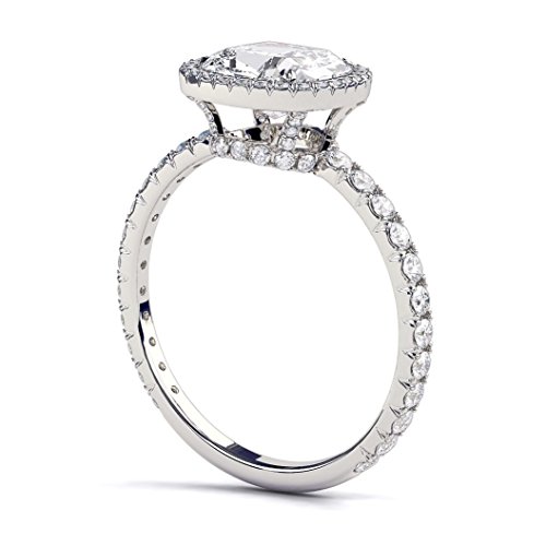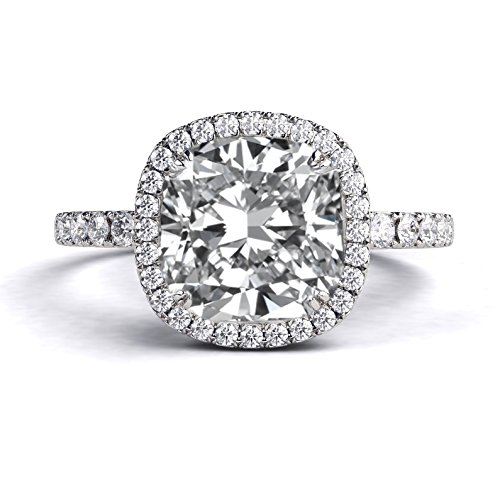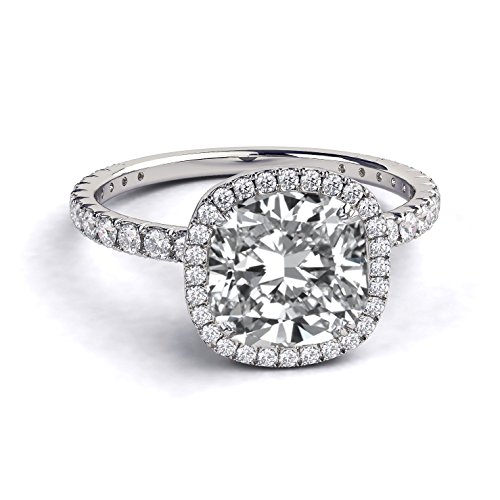 -. Binding : Jewelry -. Brand : Diamond Mine -. Department : womens -. Feature : "Forever One" True Colorless D-F color and VVS clarity. Most of the moissanite rings on the market are "Forever Brilliant" which means they are lower I-J color. / Limited Lifetime Original Guarantee from Charles & Colvard. Independent Appraisal Report. / Highest Craftsmanship Level and Jewelry Finish. Shine is higher than a diamond, hardness almost on the same level. Most brilliant gem on earth. / 30 Days returns no questions asked. Free sizing service. Free shipping. / We use only recycled eco friendly gold and conflict free gemstones made in the US. -. Label : Diamond Mine -. Manufacturer : Diamond Mine -. ProductGroup : Jewelry -. ProductTypeName : FASHIONRING -. Publisher : Diamond Mine -. Studio : Diamond Mine -. Title : 1.60 Carat Forever One Colorless VVS Moissanite Engagement Ring with Diamonds 14K White Gold Halo Micro Pave Cushion