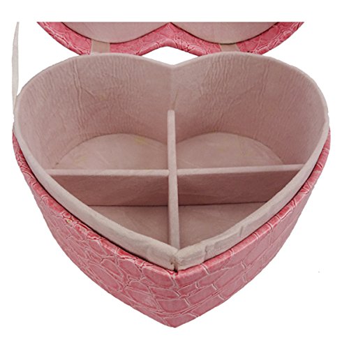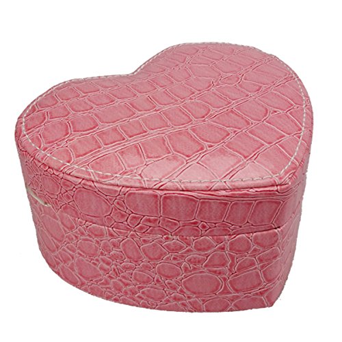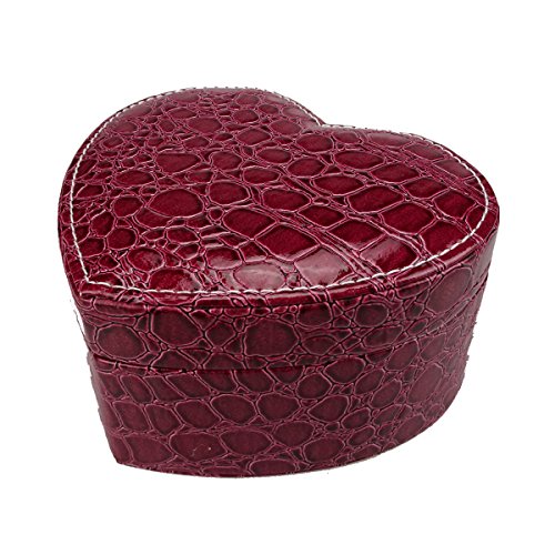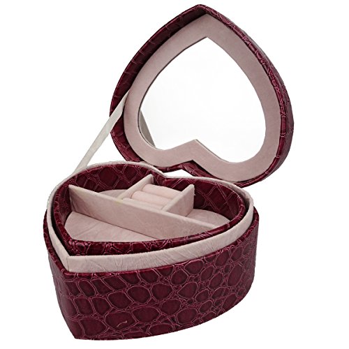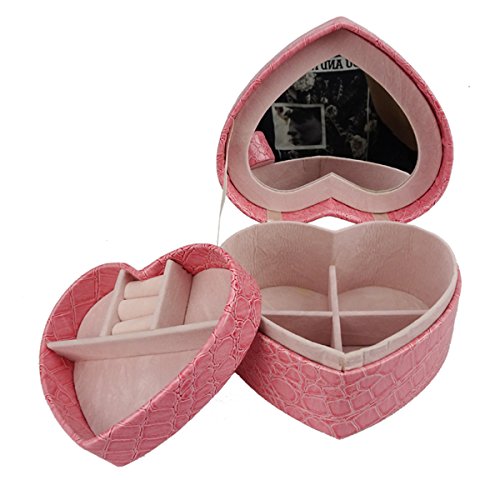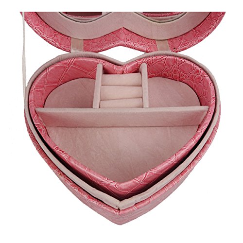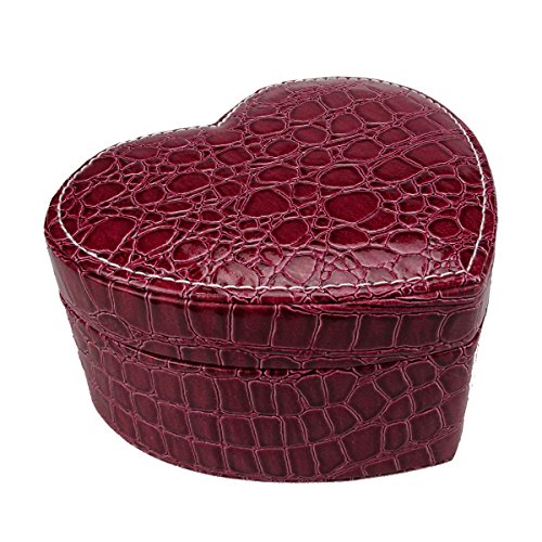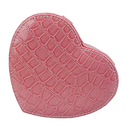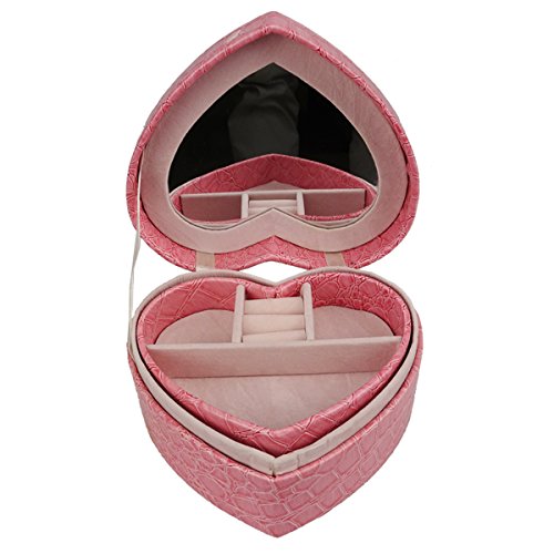 -. Title : Lanscoe Heart Shape Jewelry Box Faux Crocodile Leather Small Travel W/ Mirror&2 Layers