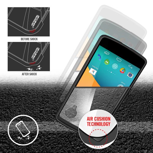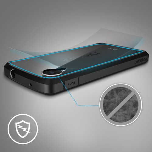 SPIGEN Nexus 5 Ultra Hybrid case is a bumper case that protects the back of the device as well. The soft TPU is wrapped around the side of the Nexus 5 to provide excellent protection and grip. The transparent back panel clearly shows the back of the Nexus 5. SPIGEN Ultra Hybrid is a stylish bumper case with Air Cushion Technology and Rear Guard protection.Included Screen Protector - Premium Development Process- Optical Base PET film made in Japan.- Designed in Irvine, California.- Manufactured in Korea.