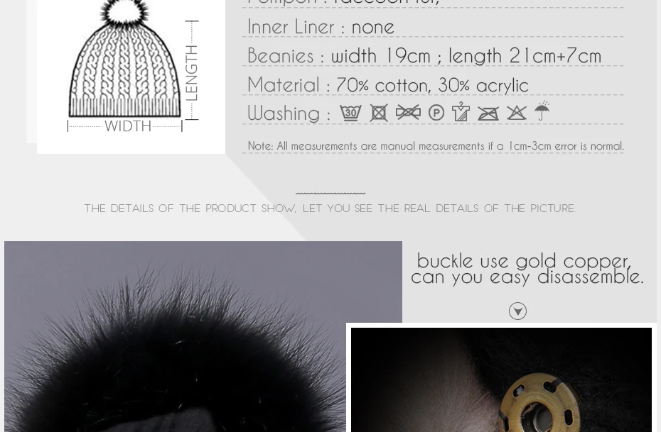 Pompon Material: 100% Real Raccoon Fur