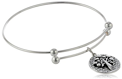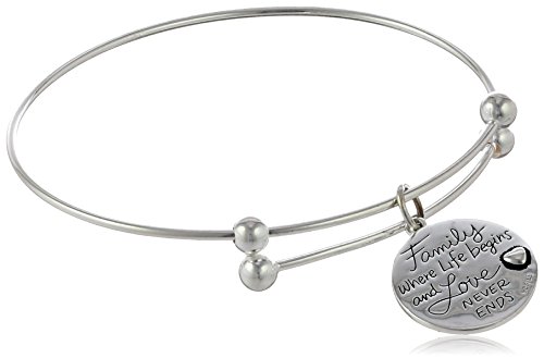 Sterling Silver Adjustable "Family Where Life Begins and Love Never Ends" Tree Charm Bangle Bracelet