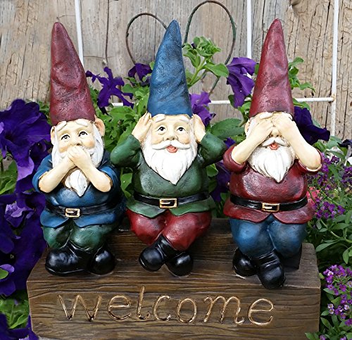 No Evil - 11" Welcome Garden Gnomes - See no evil, Hear no evil, Speak no evil Figurine by Harmony Fountains HF-G10