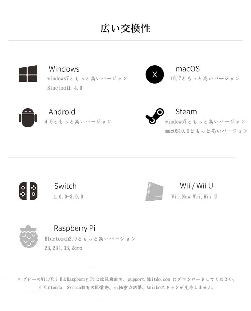 Wii / Wii U and Raspberry Pi are extension functions, please download it to support.8bitdo.com.