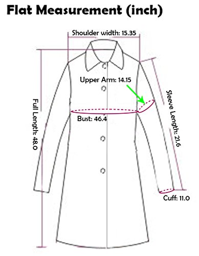 Fit US 2-12, Bust: 46.4", Shoulder Width: 15.35", Upper Arm: 14.15", Sleeve Length: 21.6", Cuff: 11.0", Full Length: 48.0" , Hem: 75.5(FLAT-MEASURED)