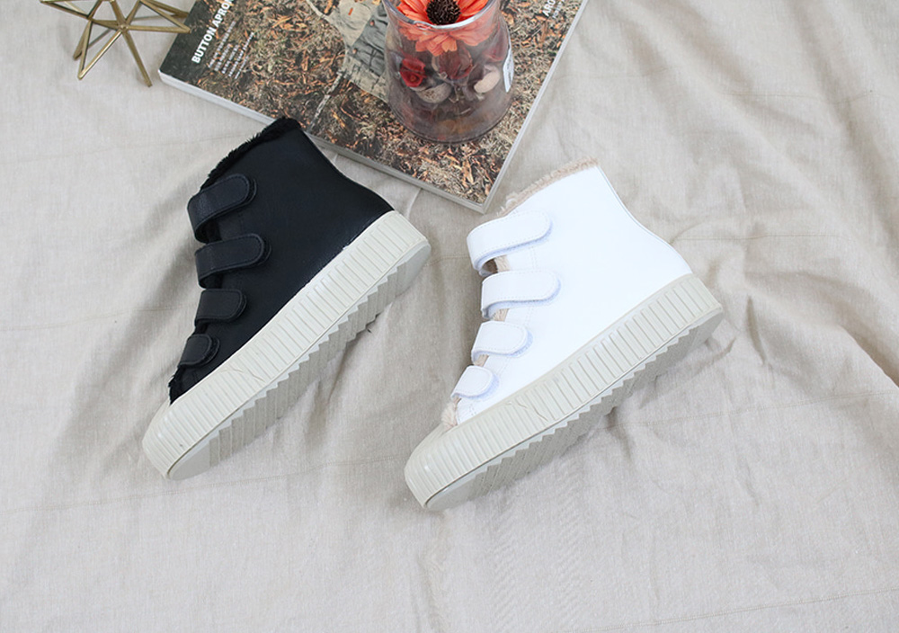 벨크로 퍼 통굽 하이탑 스니커즈 입니다 군더더기 없이 깔끔하고 베이직한 라인에 둥글린 라운드 토우로 발을 깔끔하게 모아주며 깔끔하면서도 고급스러운 매력이 있는 슈즈입니다 발등위 벨크로 스타일및 인사이드 지퍼 클로징으로 착화시 신고 벗기 간편합니다 안감전체가 부드러운 퍼안감으로 발의 보온을 유지해주어 따뜻하게 신으실수 있습니다 깔끔하고 캐주얼한 디자인으로 어떠한 룩에도 자연스럽게 잘 어울려 다양한 코디에 즐겨 신기 좋은 슈즈입니다 활용도 만점의 데일리아이템 소개합니다.