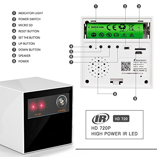 PANORAXY PA-W100V.3 P2P IP Spy Security Cam, Invisible Lens,8Mtrs Night View, IOS/Android App for Mobile/PAD,with 16G Toshiba SD, Continuous Power/Battery,Time Stamp in Video, Circle Record(White)