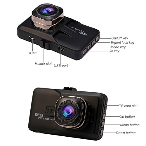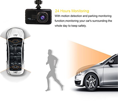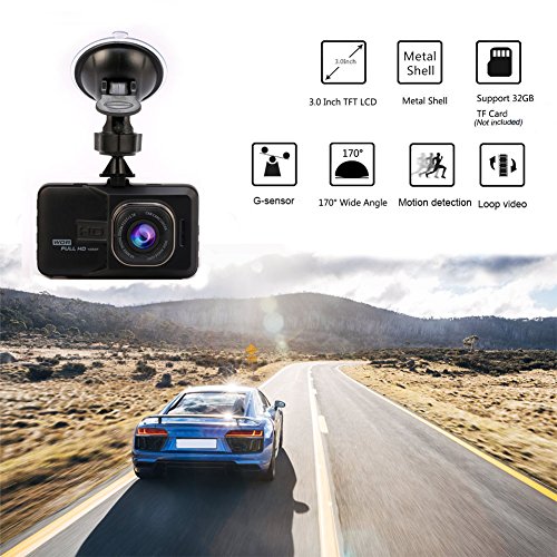 - 12-Month Warranty, Full HD 1080P 3 inch Car Cam Dash video recording with Rear camera.Up to 32GB TF Card (TF CARD NOT INCLUDED).