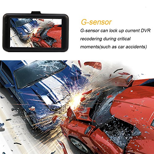 - G-Sensor&Wide Lens:Enabled Recording Occurs as soon as Any Sudden Braking, Impact, Rapid Acceleration or Sharp Cornering Occurs. The dash camera also supports SOS emergency recording.The car camera with a 170 degree viewing angle, you'll be able to capture a full-field view without missing a thing.