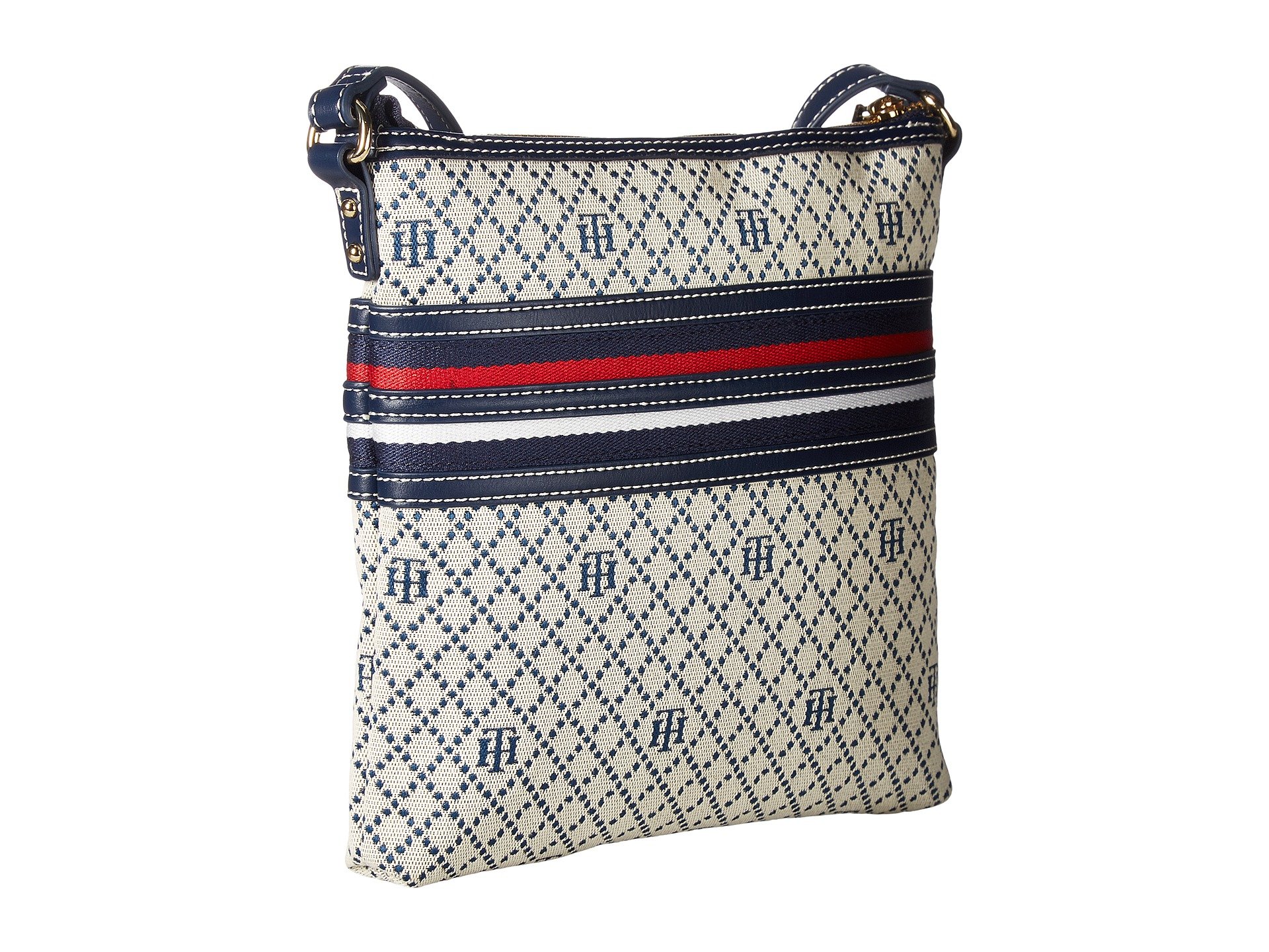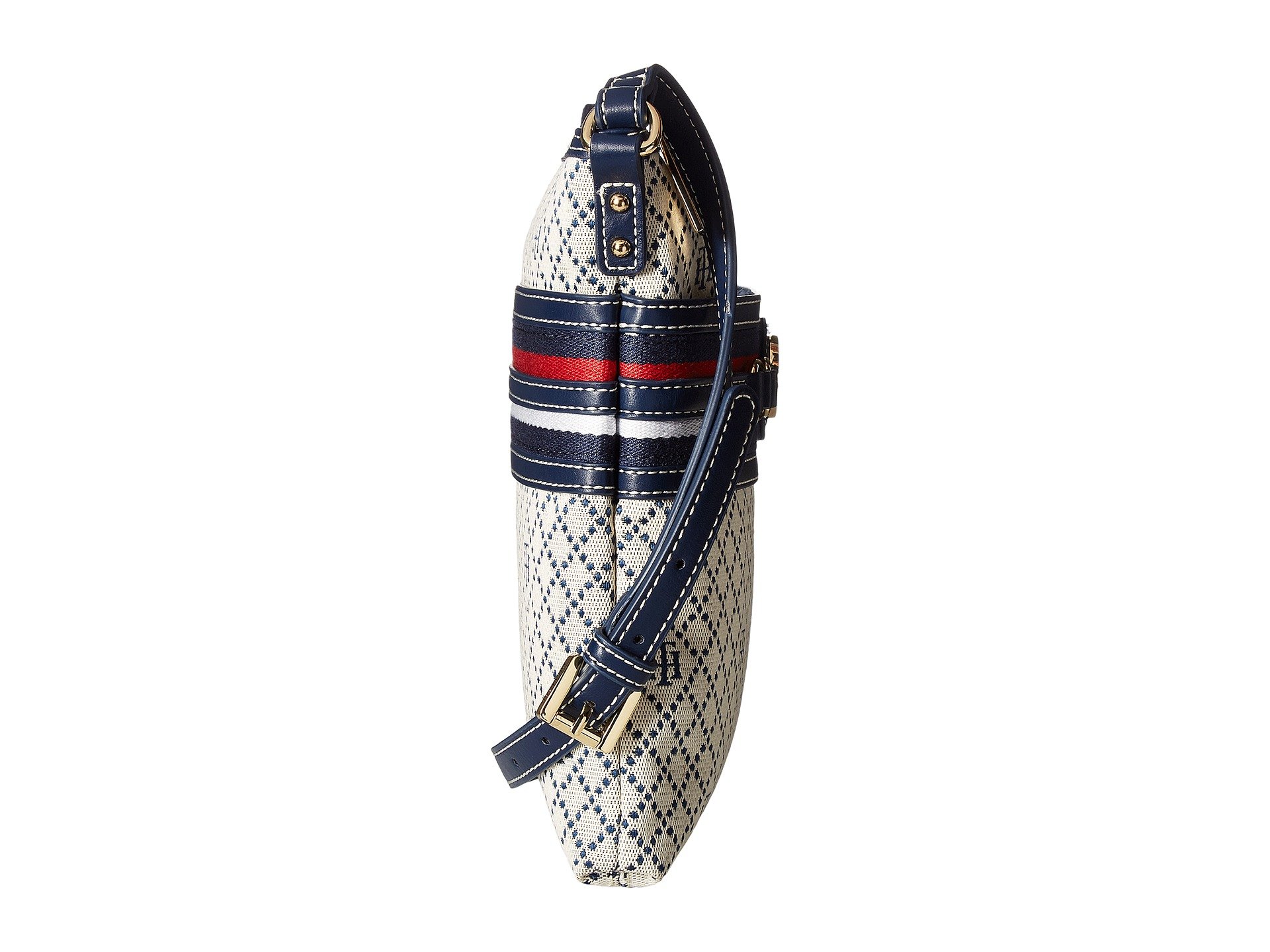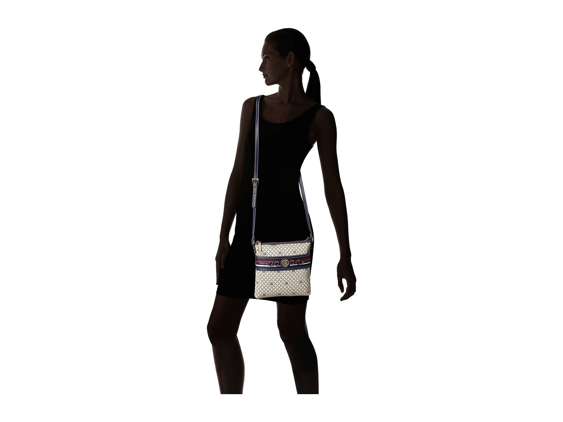 | Product Information SKU: #8947538The Tommy Hilfiger? Payton North/South Crossbody is simply perfect for you!Made of fabric with faux-leather trim. Zipper closure.Adjustable crossbody strap.Exterior features brand detail at the front and one slip pocket.Lined interior features one zip and one slip pocket.Imported.This product may have a manufacturer's warranty. Please visit the manufacturer's website or contact us at warranty@support.zappos.com for full manufacturer warranty details.Measurements: Bottom Width: 9 in Depth: 1 1?4 in Height: 9 in Strap Length: 51 in Strap Drop: 24 1?4 in Weight: 12.2 oz |