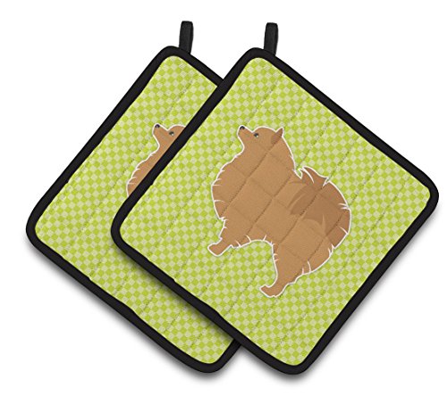 Caroline's Treasures Pomeranian Checkerboard green Pair of Pot Holders BB3842PTHD, 7.5HX7.5W, Multicolor