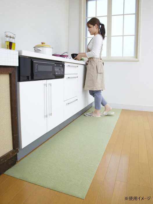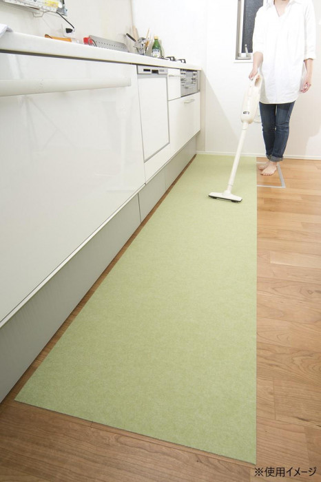 厚さ3mmで段差の少ない、1枚で敷けるキッチンマットです。おくだけで取付け、取り外し簡単。洗濯機で丸洗いできます。生地が薄いのでつまずきにくく、扉の開閉の妨げにもなりません。フローリングの汚れを防ぎます。掃除機をかけても、裏面の吸着効果でめくれ上がることなく、簡単にお掃除できます。 |