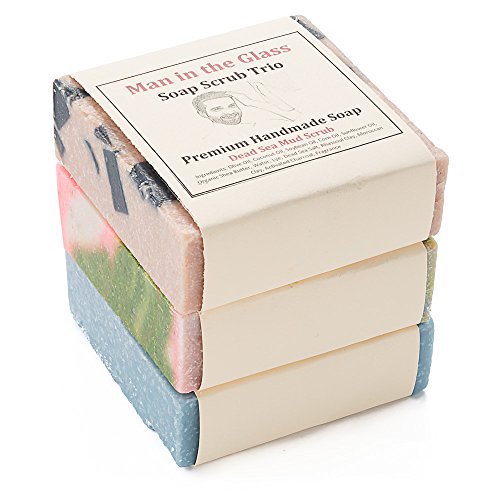 Natural Handmade Bar Soap Scrub Cleanser Trio 5oz Exfoliating & Foaming for men's face/body. Ingredients: Organic Shea Butter, oils,charcoal, sea...