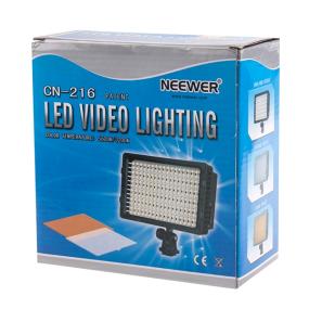 The Neewer CN-216 is the next step up from our Neewer CN-160 LED Video Light. The CN-216 features a new 16:9 widescreen design allowing a wider range of light and brighter effect. Like the CN-160, the CN-216 helps to ensure perfect settings for your photography or video subject. With it's lightweight and durable construction, you can carry this light around with you wherever you go. The Neewer CN-216 features 216 super-bright LED lights and is equipped with a dimmer switch so you can adjust the intensity while shooting. The layout allows for quick, easy adjustments to be made so you never miss that perfect shot!