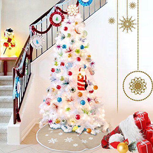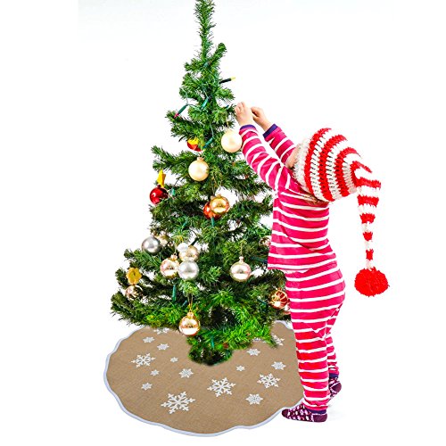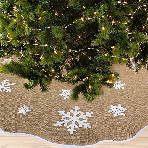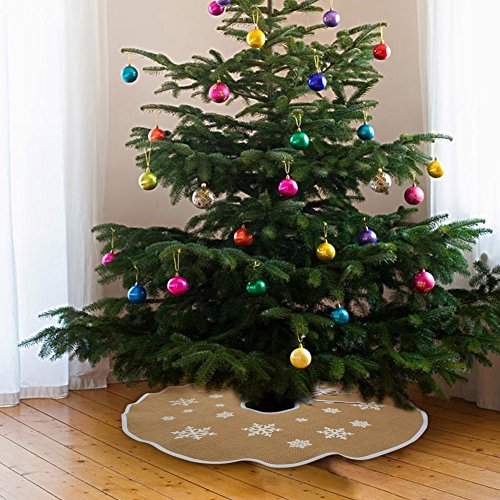 AerWo Burlap Snowflake Christmas Tree Skirt Ornament 48inch Diameter Christmas Decoration New Year Party Supply