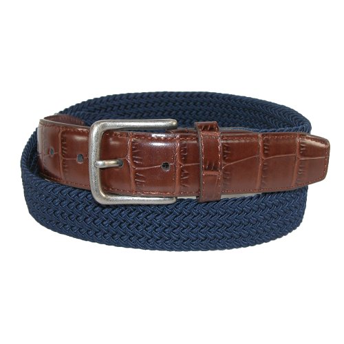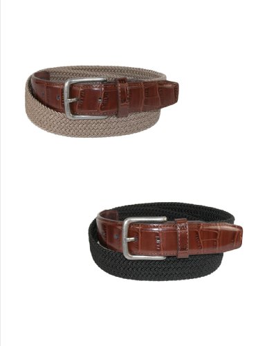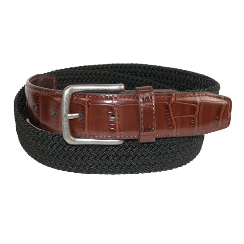 -. Title : CTM Men's Elastic Braided Golf Belt with Croco Print End Tabs
