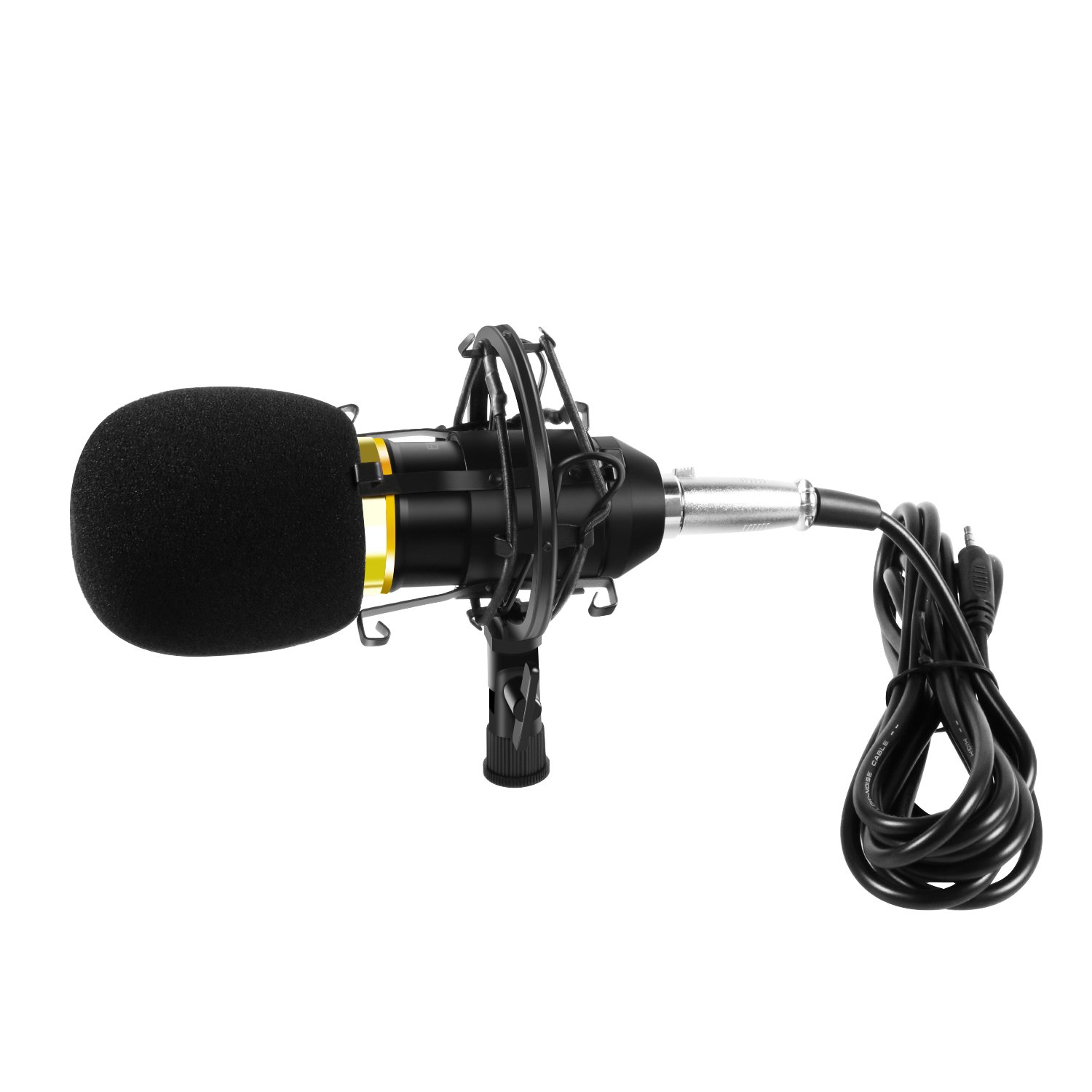 With sponge microphone windshield and shock mount, pop noise is reduced and saliva problem is solved better as well.