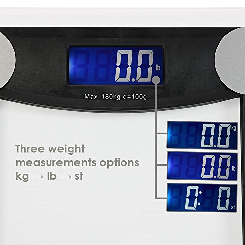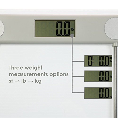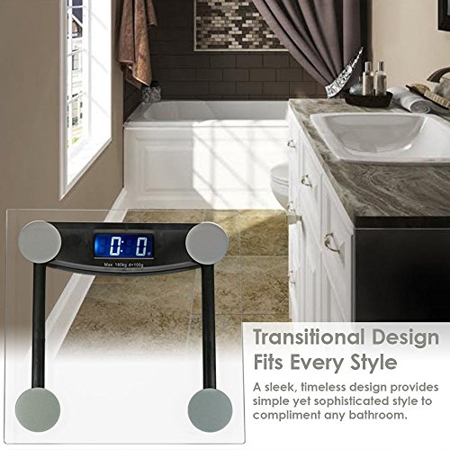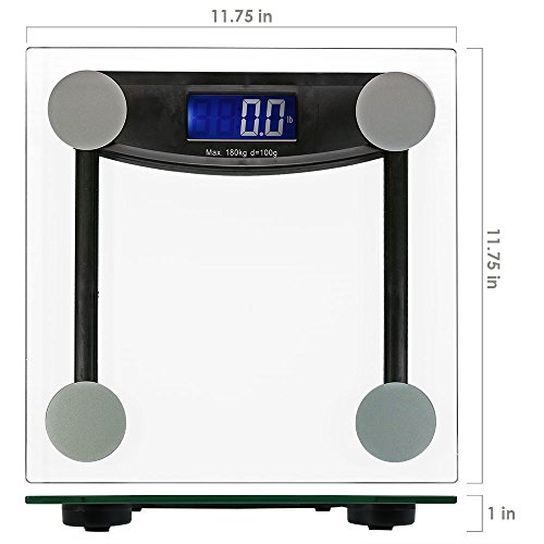 -. Brand : Sunnydaze Decor -. Color : Multiple Colors Available -. Feature : Overall dimensions: 11 inches long x 11 inches wide x .75 inch-tall; weight capacity: 396 pounds so it is durable enough to weigh most average adults. / Easy-clean glass surface and digital screen reads up to 4 digits which makes the scale easy to use and read in all lighting conditions. Each scale also has non-slip rubber feet to protect your floor. / Includes 1 bathroom scale with a unit button to switch from pounds to kilograms, and 2 AAA batteries, so you can weigh yourself with ease. 4 black footpads protect your floor's surface and keeps the scale level. / Auto zero, resetting, and auto shut-off helps save the battery when not in use. / Sunnydaze Decor backs its products with a 1-year manufacturer's warranty for worry-free purchasing. -. Label : Sunnydaze Decor -. Manufacturer : Sunnydaze Decor -. Model : RES-GlassScale -. MPN : RES-GlassScale -. PartNumber : RES-GlassScale -. ProductGroup : Health and Beauty -. ProductTypeName : PERSONAL_CARE_APPLIANCE -. Publisher : Sunnydaze Decor -. Studio : Sunnydaze Decor -. Title : Sunnydaze Precision Clear Glass Bathroom Scale with Step-On Technology and LCD Display