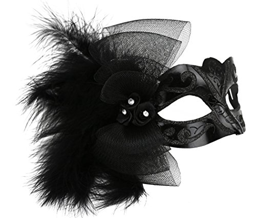 -. Title : Womens Masquerade Mask Venetian Feather Mardi Gras Party Mask with Fascinator