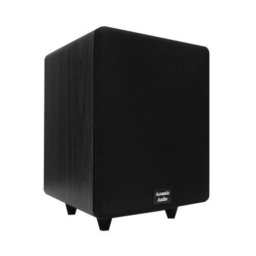 Acoustic Audio's Cinema Series powered home theater/audio subs immerse you right into the action of your fast-paced movies and sports. Add low frequency impact to your favorite movies and full bodied bass to your favorite tunes with a sub that's barely a cubic foot. Its stylish design and superior sound make it a smart addition to any home theater. Its elegant black ash finish is refined and complements most flat-panel displays. It features a high-current, 250-watt amp which effortlessly drives its front-firing 6.5" woofer for dynamic low-frequency effects and active compression circuitry for clipping and spike protection. The high and low inputs let you use any receiver or processor. The 6.5" woofer utilizes a long excursion cone for deep, accurate response. The MDF bass-reflex enclosure features internal bracing, and a 30Hz to 200Hz frequency response delivers thumping bass from all your action movies and CD albums.Feature