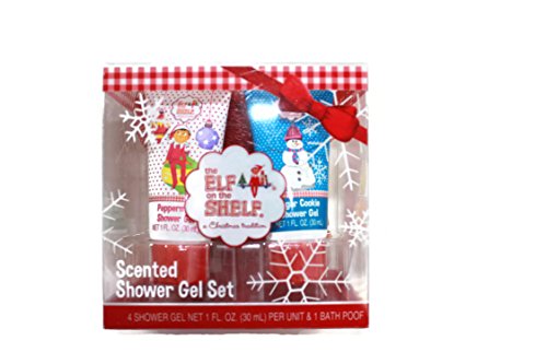 Elf on the Shelf Gift Set of 4 Shower Gels and 1 Bath Poof