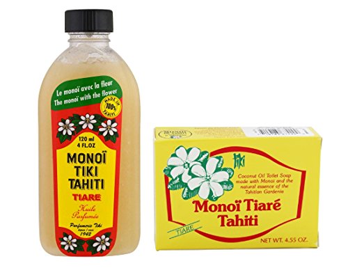 - This bundle includes one 4 fl. oz. bottle of Monoi Tiki Tahiti Tiare and one 4.55 oz bar of Monoi Tiare Tahiti Gardenia Soap