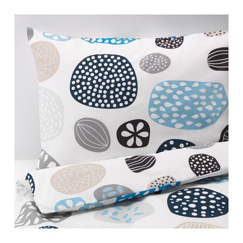 Ikea Ringkrage Queen Duvet Cover and Pillowcase, Blue White