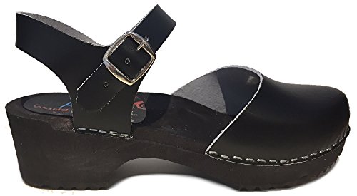 -. Binding : Apparel -. Brand : World of Clogs.com -. Department : womens -. Feature : Traditional Clog Sandals / Real leather uppers / Sustainable wooden footbed / Grippy soles / Made in Europe -. ProductGroup : Shoes -. ProductTypeName : SHOES -. Title : World of Clogs.com AM-Toffeln 414 Wooden Clog Sandals in Black