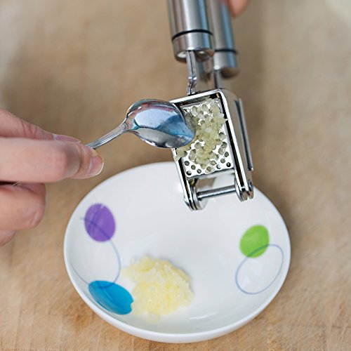 HIGH QUALITY MATERIAL:This garlic press is made of high grade SUS304 stainless steel head to toe! It is durable and rustproof! Not all garlic presses are made of food-grade staniless steel though they look alike, some of them are made of zinc alloy and some are low quality staineless steel products. The cheap copies may be rust or break next day,be careful!