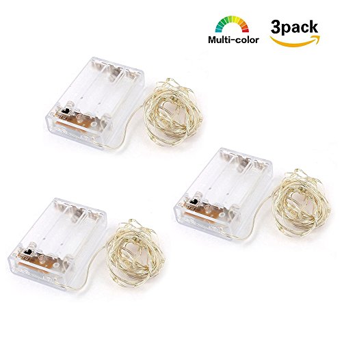 LED Decorative Lights String,16.4Ft 50 LEDS Indoor/Outdoor Starry Lights with 3xAA Battery Power Supply for Holiday, Christmas, New Year, Wedding, Birthday Party,Decoration (Multicolored)【3-pack】