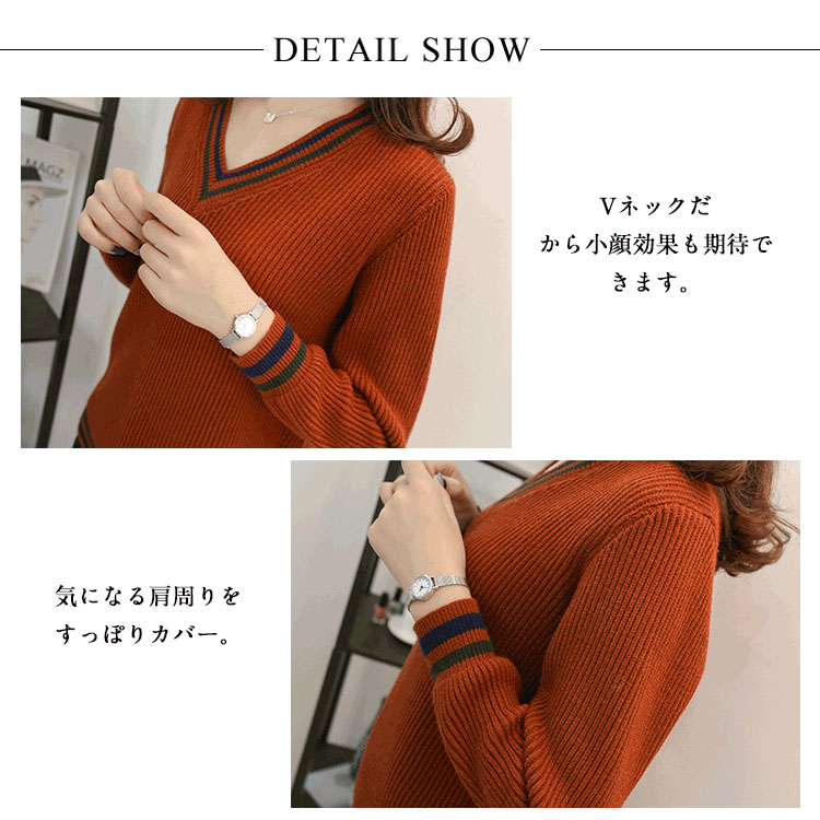| 体のラインを拾わないゆったりシルエットを作るのニットトップス。胸元のVネックは丸顔や胸が大きく、肩幅のある方にすっきりした印象を。上品なニット素材を使用し、肌触りの柔らかい着心地に仕上げました。程良くゆとりのあるサイズ感なのでシャツを合わせても可愛いです。ヒップにかかる丈感は定番のパンツ合わせも、スカートと合わせたトレンドのスタイリングも一押し。 | |