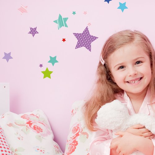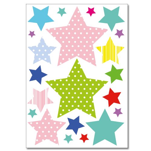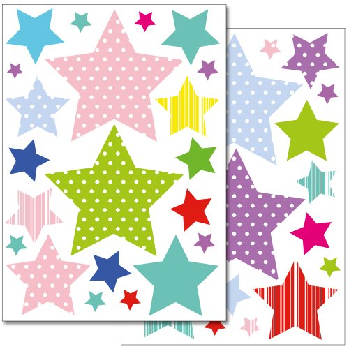 Wandkings wall stickers Colourful Stars with Patterns Sticker Set – 42 stickers on 2 US letter sheets (each 8.3 x 11.7 inch)