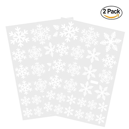 BearDaDa 2 Pack of Winter Snowflakes Clings Static Stickers, Window Ornaments Decor for Christmas - White
