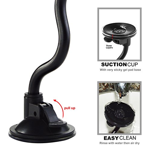 Strong suction cup lock quickly by one press, can sticks securely to most surfaces, yet is still easily removable. Long Flexible Arm/Gooseneck Shockproof Lever Design allows for easy positioning, lever size: 5.0"-7.2"(include suction base)