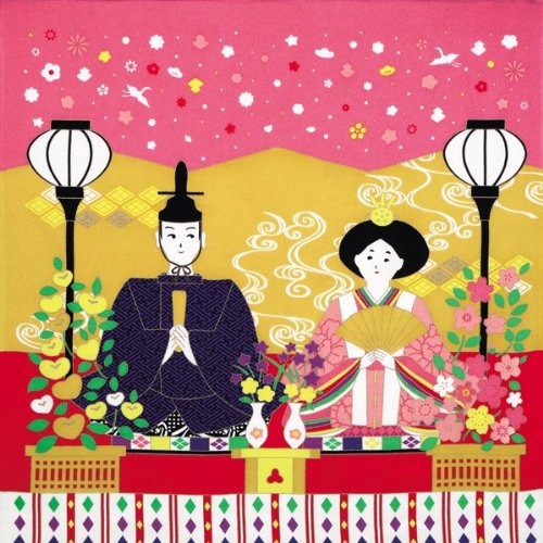 -. Title : 彩時記 丹後ちりめん友仙風呂敷(ふろしき) 雛祭り 二巾(68cm幅)