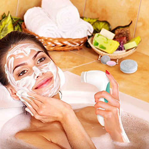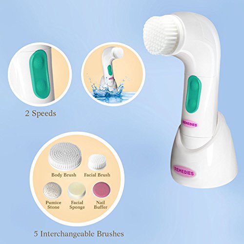 -. Title : Waterproof Electric Facial Cleansing Brush - 5 Premium Soft Brushes for Skin Exfoliation and Acne Treatment - 2 Speeds for Massage & Scrubbing. Face Brush/Sponge/Body Brush/Pumice Stone & Nail Buffer