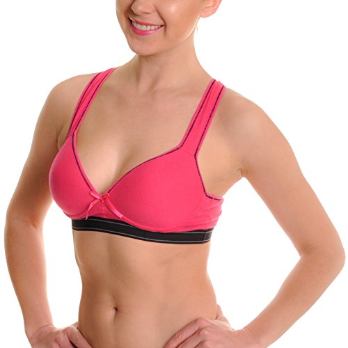 Look stylish and sexy in our cut-and-sew moulded cup racerback sports bra. It is lightly padded for better definition and support. Wireless and made with cotton to provide complete comfort for everyday wear. Trimmed with contrasting color; available in multiple colors. Made from 92% cotton and 8% spandex. Machine wash in laundry lingerie bag in cold water, line dry. For better results, hand wash.Feature