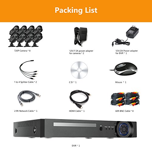 -. Binding : Electronics -. Brand : Zclever -. Color : 8ch+8cam -. EAN : 0688115877313 -. Feature : 1.8*1080N AHD outdoor cameras with perfect image quality! IR Night Vision up to 80ft. / 2.8 Channel 1080N DVR/NVR support analog cameras, ip cameras and AHD cameras. / 3.Quick remote setup in minutes! View HD live demo anywhere anytime with free advanced App &PC! / 4.Motion Detection Recording: this recording mode allows you save more capacity hard drive. / 5.3 years warranty anf life time tech support! -. Label : Zclever -. Manufacturer : Zclever -. Model : LYSB01M06HS89-ELECTRNCS -. MPN : LYSB01M06HS89-ELECTRNCS -. PackageQuantity : 1 -. PartNumber : LYSB01M06HS89-ELECTRNCS -. ProductGroup : Photography -. ProductTypeName : SURVEILANCE_SYSTEMS -. Publisher : Zclever -. Studio : Zclever -. Title : Zclever 8 Outdoor 1080N HD 1200TVL Home Security Camera System with 8 Channel 1080P AHD Surveillance DVR -. UPC : 688115877313