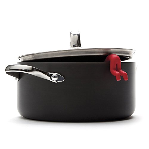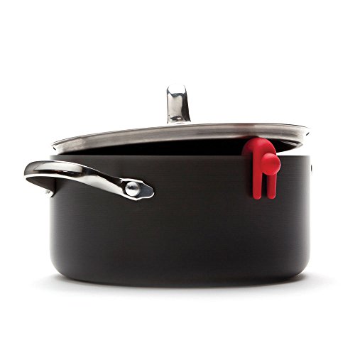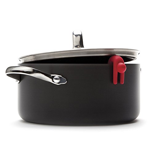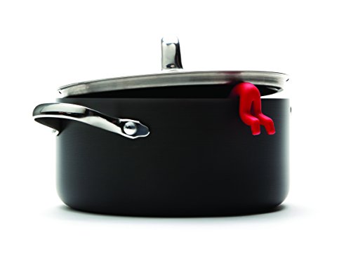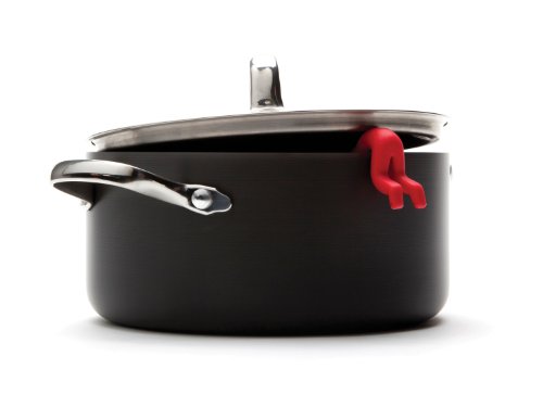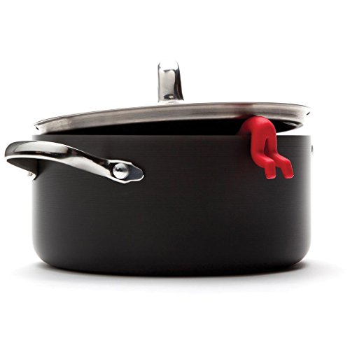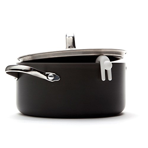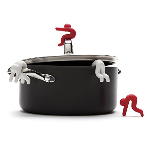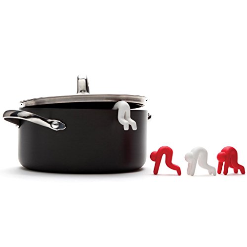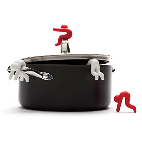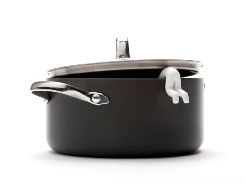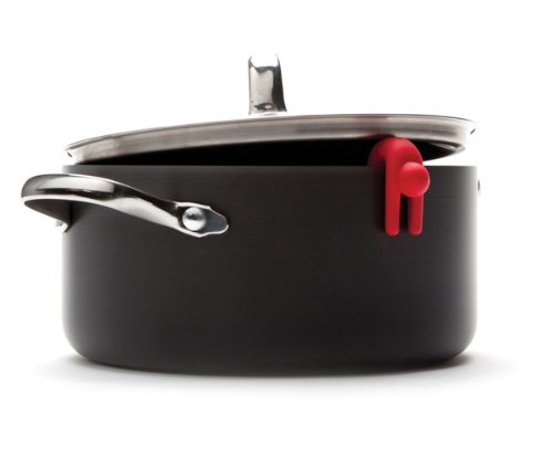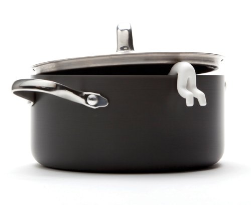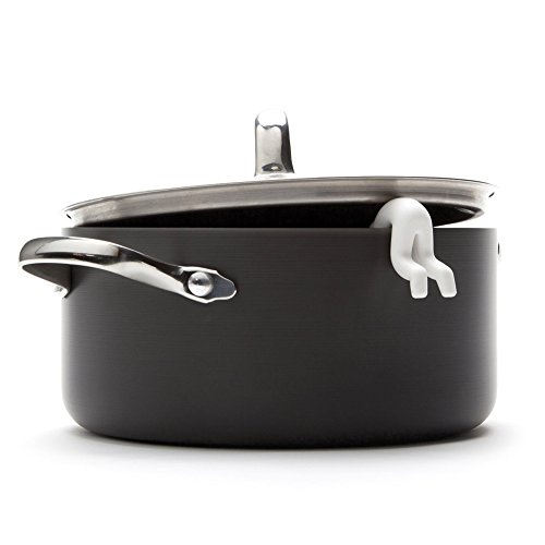 Lid Sid hangs out of steaming pots keeping lids ajar for cooling.