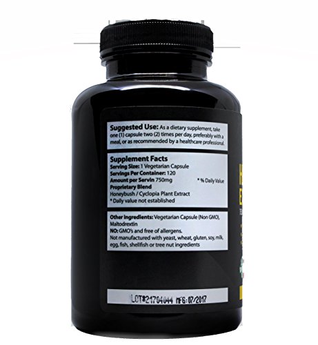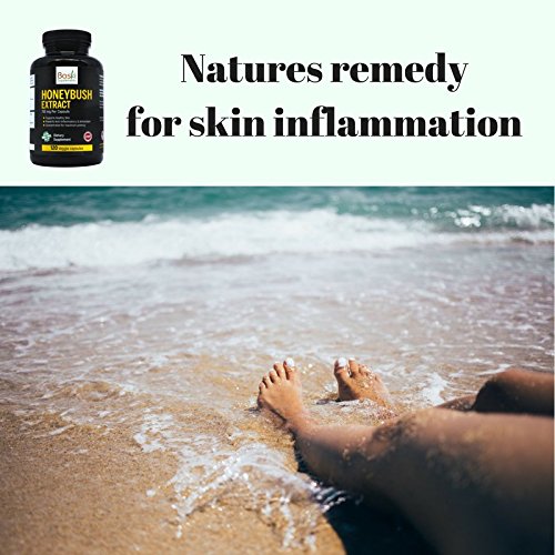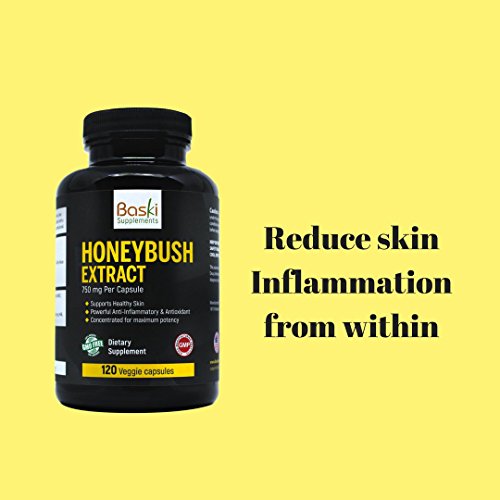 -. Feature : ANTI-INFLAMMATORY. 100% all natural Honeybush tea extract to reduce skin inflammation. There is evidence that the phenolic compounds in honeybush tea are able to reduce inflammation and prevent the development of chronic inflammatory diseases. Phenolic compounds have a direct effect on down-regulating the body's inflammatory response. This makes Honeybush Extract effective in providing inflammatory relief to skin flare ups and irritation caused by conditions like psoriasis and eczema. / POWERFUL ANTIOXIDANT full of minerals and vitamims and free of caffeine. The Honeybush Extract is a natural source of many antioxidants, including major phenolic compounds. Phenolic compounds play a significant role in protecting the immune system from oxidative stress, which could damage cells, according to a 2013 review published in "Nutrients." Phenolic compounds also modulate the immune system, which helps the body's natural defenses against infections. / REDUCE SKIN INFLAMMATION from within. It only takes two capsules a day. The Honeybush Extract provides a great alternative to topical treatments for eczema, psoriasis, rosacea and acne. The capsules can be taken at any time during the day including before bed time to aid the sleep cycle. / MAXIMUM POTENCY. 120 vegetarian capsules, 750 mg. 2 MONTH SUPPLY.We produce our Baski Honeybush Extract on an FDA approved manufacturing facility to share it with the world. / MULTIPLE HEALTH BENEFITS. The Honeybush Extract also contains other therapeutic substances, including: pinitol, which is an effective expectorant and has shown anti-diabetic activity; isoflavones, which help regulate menstrual cycles and have been found to be helpful maintaining a healthy immune system ; flavones, which are natural anti-inflammatories and have anti-viral properties; and xanthones, which are also anti-inflammatory.