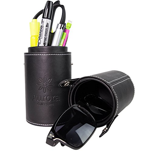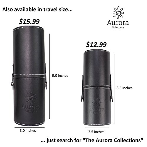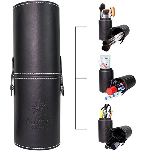 -. Feature : THE LARGEST BRUSH HOLDER ON THE MARKET - The Aurora Collections JUMBO holder's spacious design allows you to hold up to 15-20 medium to large sized brushes to take with you on-the-go! This behemoth of a brush holder comes in at 9 inches x 3 inches x 3 inches - BRUSHES NOT INCLUDED / A MUST HAVE FOR THE FREQUENT FLYER - The versatile design of the JUMBO holder isn't just limited to brush holding! It can also be used for the storage of common travel sized items such as toiletries, office pens & pencils, sunglasses, and fragile jewelry. / EXCEPTIONAL MAKEUP BRUSH PROTECTION - The last thing you need to worry about is having your expensive set of makeup brushes lose form, get crushed, and/or gather dust. The hard cylindrical casing will ensure that your brushes hold their shape over time and keep them from collecting airborne dust even reducing the risk of breakouts or acne upon brush use! / PROFESSIONAL GRADE CONSTRUCTION - The accented white premium stitch work holds the hard leather casing in place to ensure your brushes will hold their shape over time. Each side of the holder also uses premium grade metal snaps for an air tight seal. The entire holder is also water resistant for cleaning purposes. Standard all-purpose cleaners can be lightly used with a small cloth or paper towel to wipe the exterior and interior of the holder. / LIFETIME WARRANTY - If for any reason the holder does not pass the test of time or meet your expectations we will refund your money - no questions asked!
