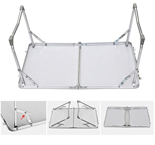 -. Feature : Safe: round corner and sleek surface help avoid undesired injury / Heavy duty: solid structure with weight capacity up to 30kg/66.1 lb / Foldable & space-saving: plastic carry handle makes it easy to carry / Practical and versatile: ideal for picnic BBQ cookout camping & reading / Durable & sturdy: made of PVC veneered MDF board and aluminum frame