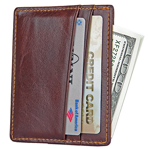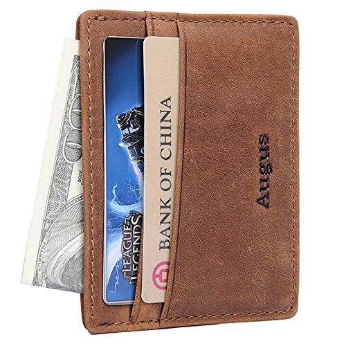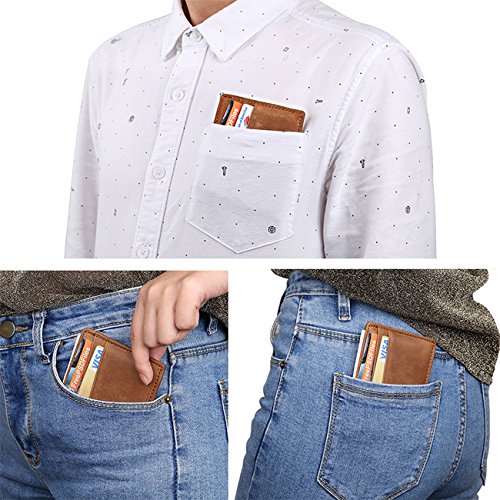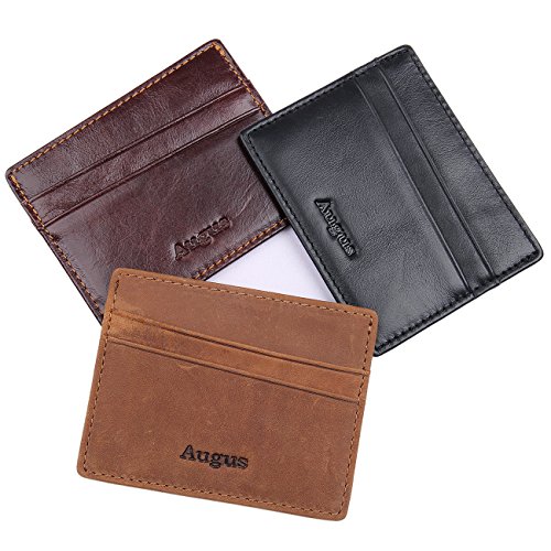 The perfect slim wallet can hold and protect your cards well,and it can be easily put into your pocket because of its slim figure. This slim card sleeve is designed to carry some most frequently used credit cards, folded cash, IDs or driver license. *Please pay attention to the above instructions before you decide to buy* 1. Differences in color may be caused by some other reasons such as color reflecton in the monitor lighting, background etc. 2. It may have strong smell when you get a real leather item, as it is new and packed for long during the delivery, You could probably put it in a sunny place for a few hours to dissipate the smell.