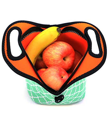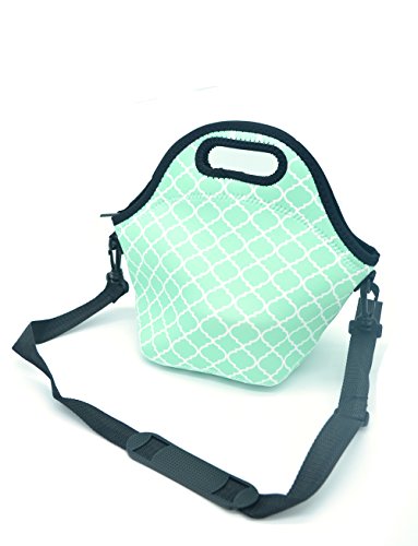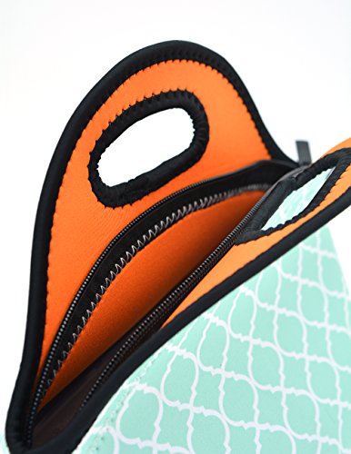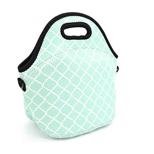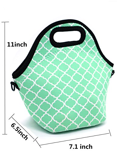 Orchidtent Neoprene Water Resistant Portable Lunch Bag Carry Case Tote with Zipper Strap Box Cooler Container Bags Picnic Outdoor Travel Fashionable Handbag Pouch for Women Men Kids Girls ,Light Green