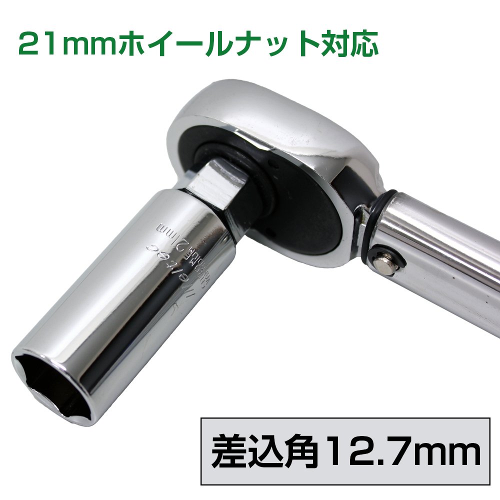 It corresponds to 21 mm wheel nut, it can also be used for tools with insertion angle of 12.7 mm.