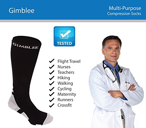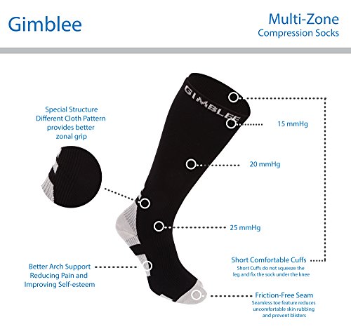 Gimblee Compression Socks for Men & Women (15-25 mmHg) - Medical Graduated - Relieve Swelling & DVT - for Training, Flight Travel, Sedentary Lifestyle - Perfect for Maternity & Pregnancy
