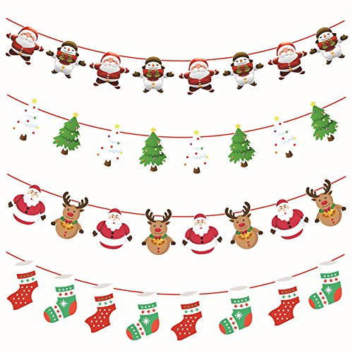 Each Banner length approx.9.8FT. Santa Claus Elk measures:7.1"x7.9" Santa Claus Snowman measures:7.9"x7.1" Christmas Tree measures:7.9"x5.5" Christmas Socks measures:7.9"x5.9"